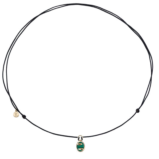 Gemini, the dual-spirited sign, with Ka's forearms intertwined. Malachite brings good fortune, so finely defined.