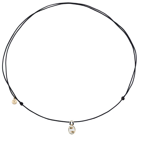 Comes with a black adjustable chord with an 18k gold logo, to treasure and hoard.